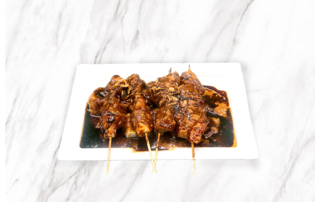 4 skewers of marinated, tender grilled beef served with a rich, nutty peanut sauce. Juicy and smoky with a hint of sweetness, perfectly paired with steamed rice or rice cake.