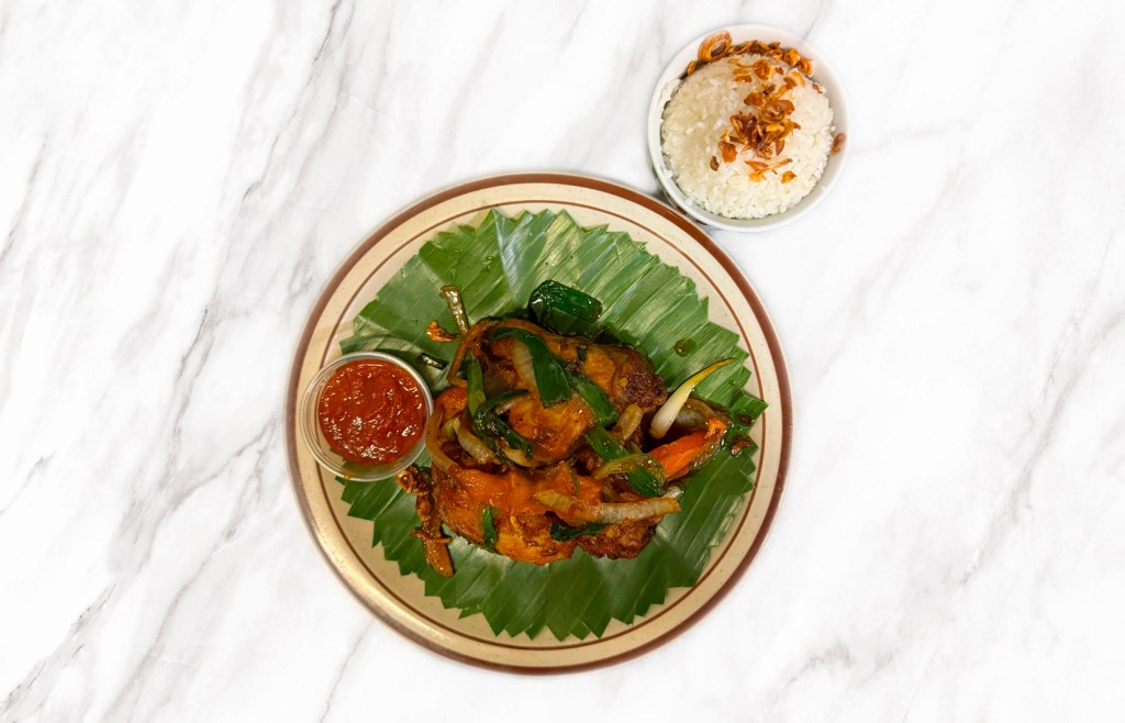 Fried chicken tossed in a flavorful butter and lemon sauce, providing a rich and tangy taste. This dish is complemented by a side of rice, making for a satisfying meal that balances the crispy chicken with the creaminess of the sauce and the heartiness of the rice.