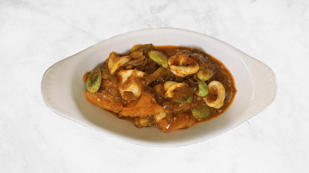 Tender squid sautéed in a fiery Indonesian chili sauce. Bold, spicy, and aromatic, this dish delivers a perfect kick of flavor that pairs beautifully with steamed rice.