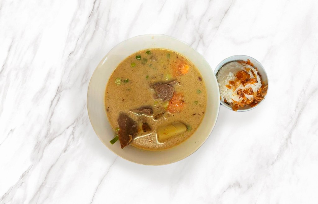 A Jakarta favorite of tender beef and tripe in a luxuriously creamy coconut milk broth, enriched with warm spices and served with steamed rice for a truly indulgent experience.